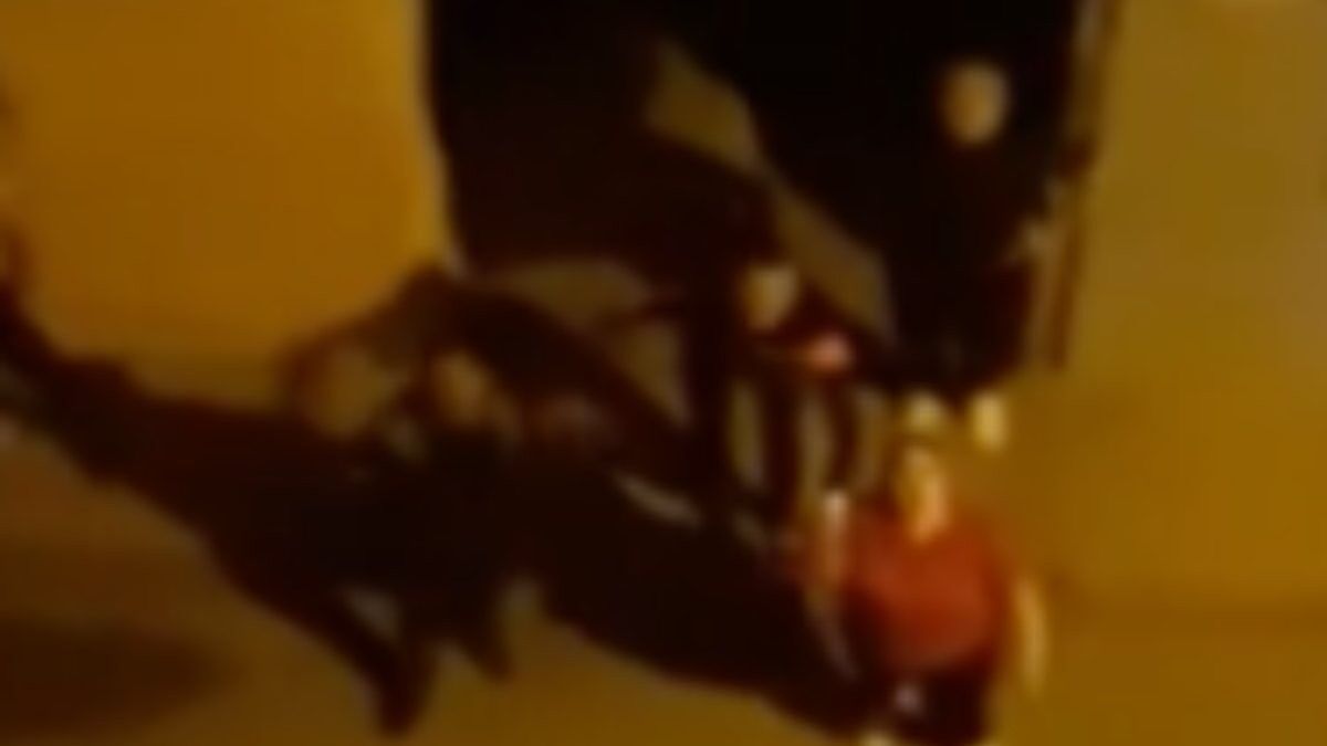 Kadınlı erkekli grup, hararetli şekilde balkondaki komşularına bağırırken evi taşlamaya başladı.