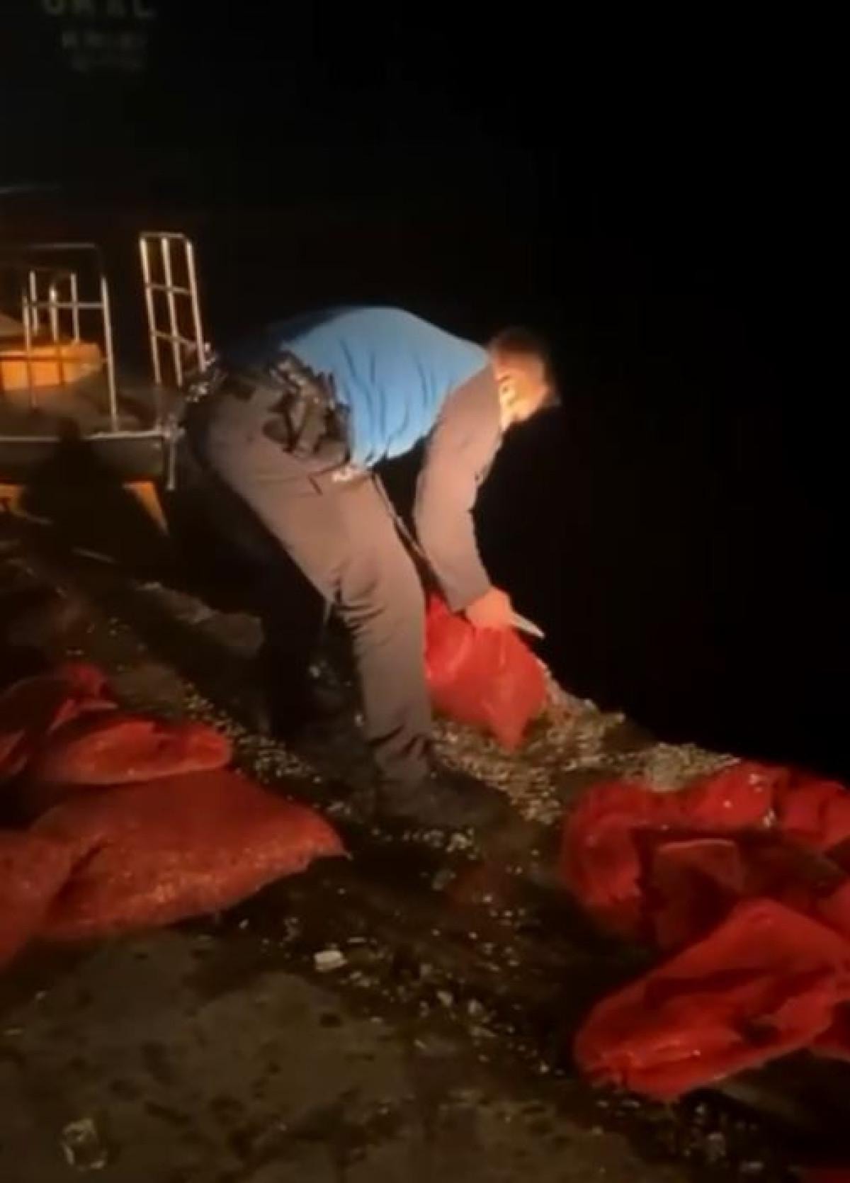 Yapılan aramalarda, yasa dışı yolla avlanmış 1 ton kum midyesi ele geçirildi.
