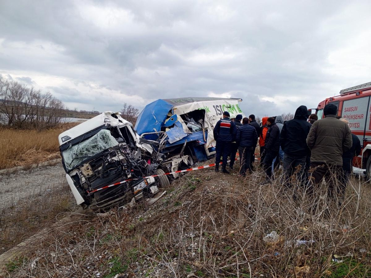 Yılmaz'ın tırı, karşı yönden gelen Ercan Yılmaz idaresindeki 55 AET 519 plakalı tır ile kafa kafaya çarpıştı.