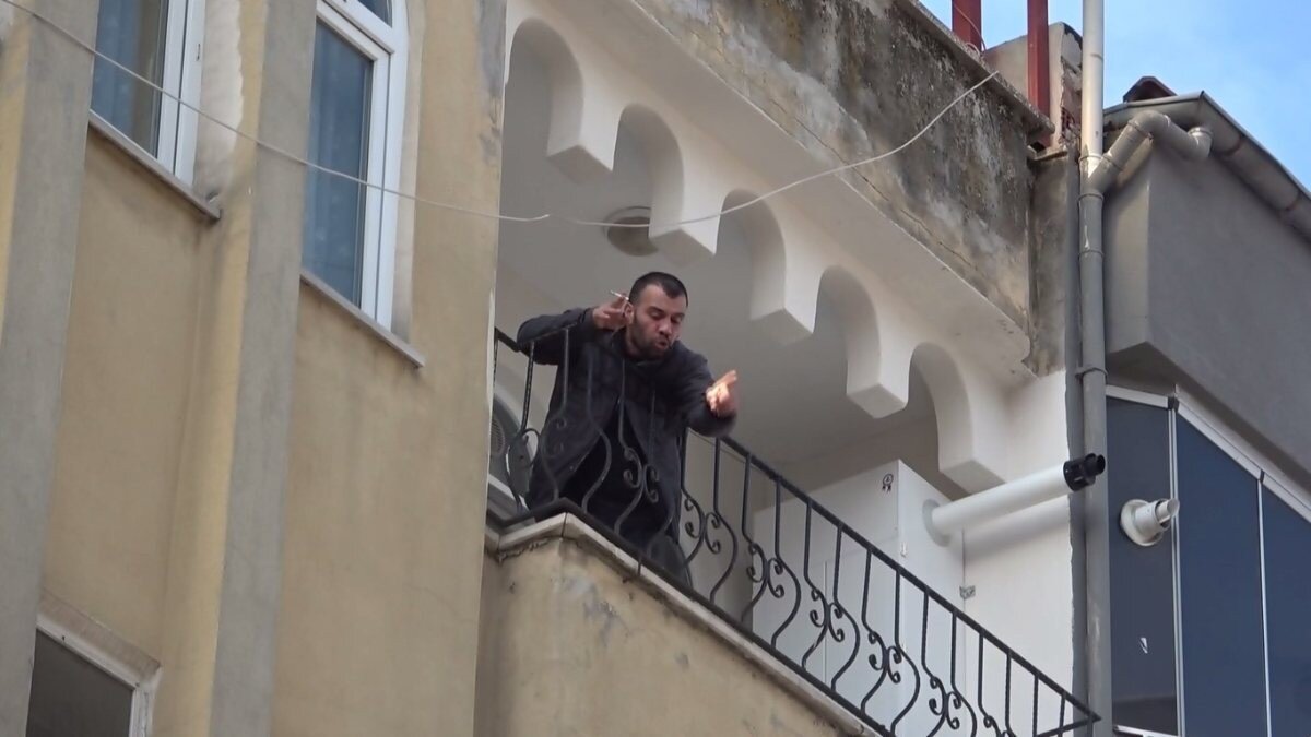 Olay yerine gelen polis ekipleri 4 katlı binanın 4. katında oturan N.Ş. "Kendimi aşağı atarım" diyerek tehditler savurdu.