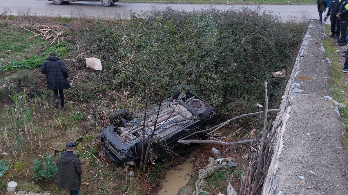 Samsun'da kontrolden çıkan araç kanala yuvarlandı VİDEO