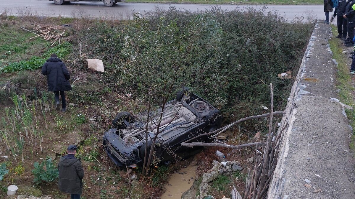 Sürücüsünün direksiyon kontrolünü kaybettiği araç, kanala yuvarlanarak ters döndü.