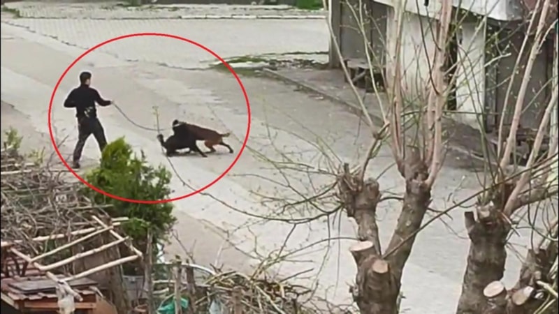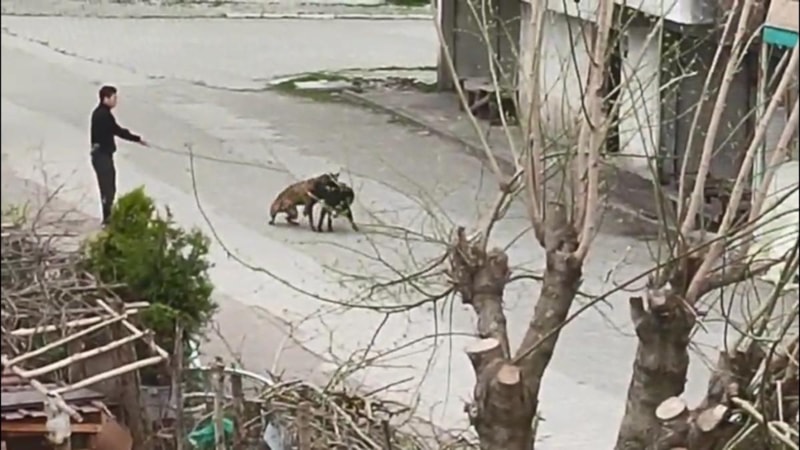 Öte yandan cep telefonu ile kaydedilen görüntülerde, bir şahsın tasmasından tuttuğu köpeğini diğer sokak köpeklerinin üzerine saldığını ve köpeklerin ilk önce bir süre havladığı, sonrasında ise kavga ettikleri anlar yer aldı.