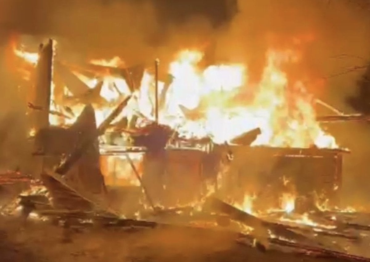 Ahşap evleri saran yangında alevler göğe yükseldi, geceyi aydınlattı.