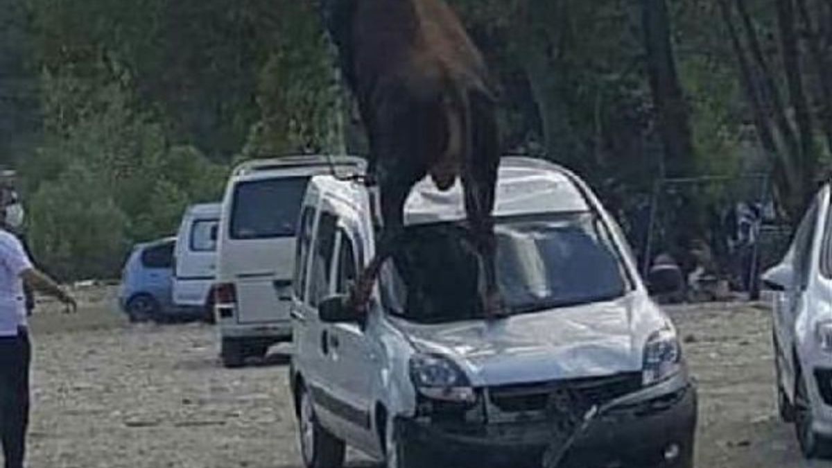 "ÜRKÜP ARACIN ÜSTÜNE ÇIKTI"