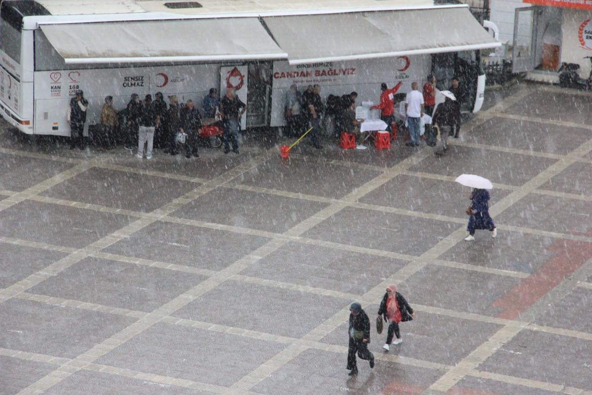 Saat 13.00 sıralarında başlayan sağanak, kent merkezinde yaşamı olumsuz etkilerken, vatandaşlar yağmura hazırlıksız yakalandı.