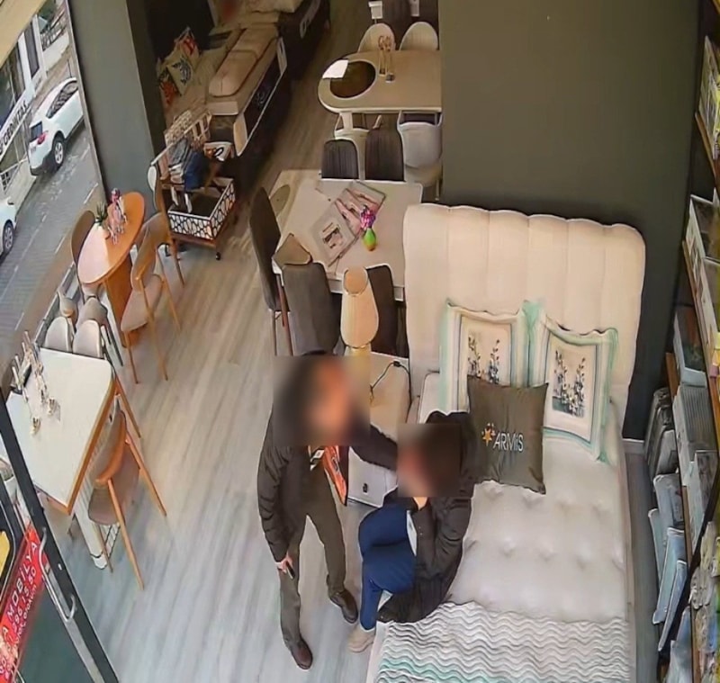 Atakum ilçesinde bir şahıs, eşini çalıştığı mobilya mağazasında darbetti. O anlar iş yerinin güvenlik kameralarına yansırken çiftin birbirlerinden şikayetçi olmadıklarını öğrenildi.