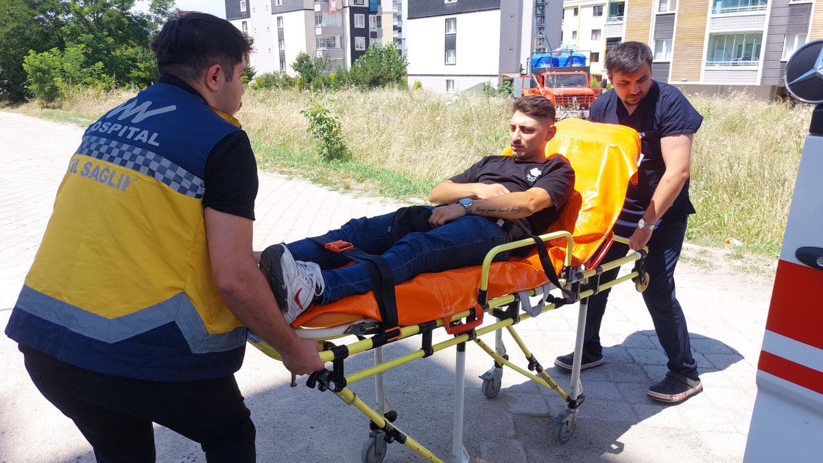 Kazada yaralanan kurye İsa Öksüz, ambulansla Gazi Devlet Hastanesi'ne kaldırıldı.