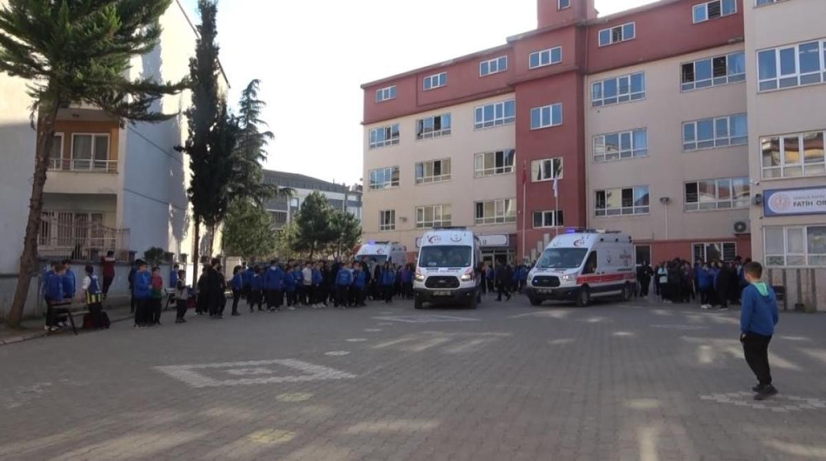 Öğretmenlerinin haber vermesi üzere okula çok sayıda ambulans sevk edildi.
