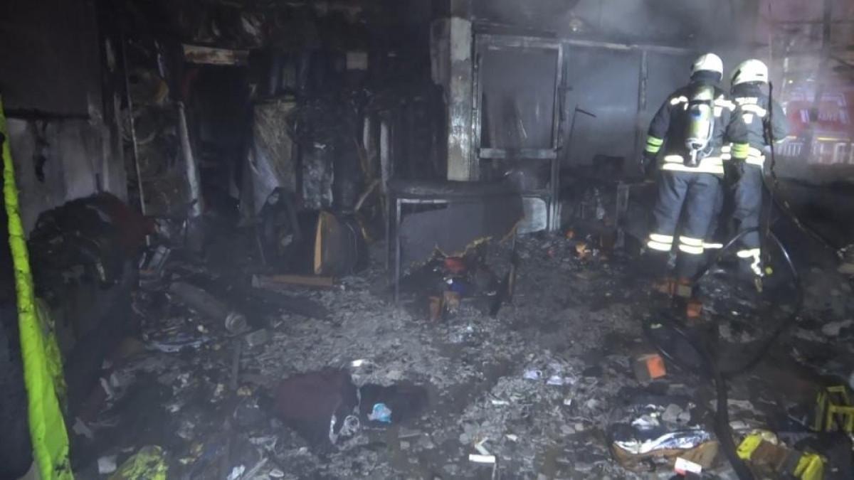 Alev alev yanan iş yerine müdahale eden itfaiye ekipleri yangını kontrol altına aldı.