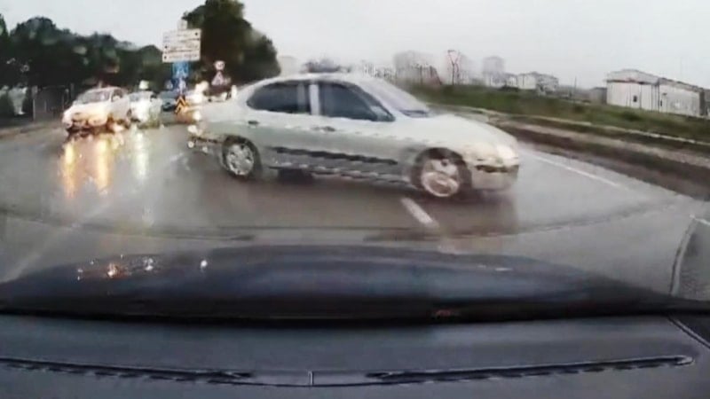 Yağmurlu bir günde trafikte seyir halinde olan bir otomobil sürücüsü, aniden yola atlayan otomobil sürücüsünün videosunu paylaşarak, “Yerler ıslak, arabalar eski. Duramazsam ikimiz de perişan olmuştuk. Ufak bir eğitim almanı öneririm. Görmediğin yola çıkma” ifadelerini kullandı.
