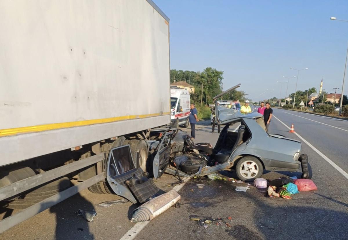 Samsun'un Çarşamba ilçesi Irmaksırtı mevkisi Samsun-Ordu kara yolunda 38 yaşındaki Necati Boğa’nın kontrolünü yitirdiği otomobil, yolun karşısındaki benzin istasyonuna geçmek için emniyet şeridinde duraklayan kamyona arkadan çarptı.