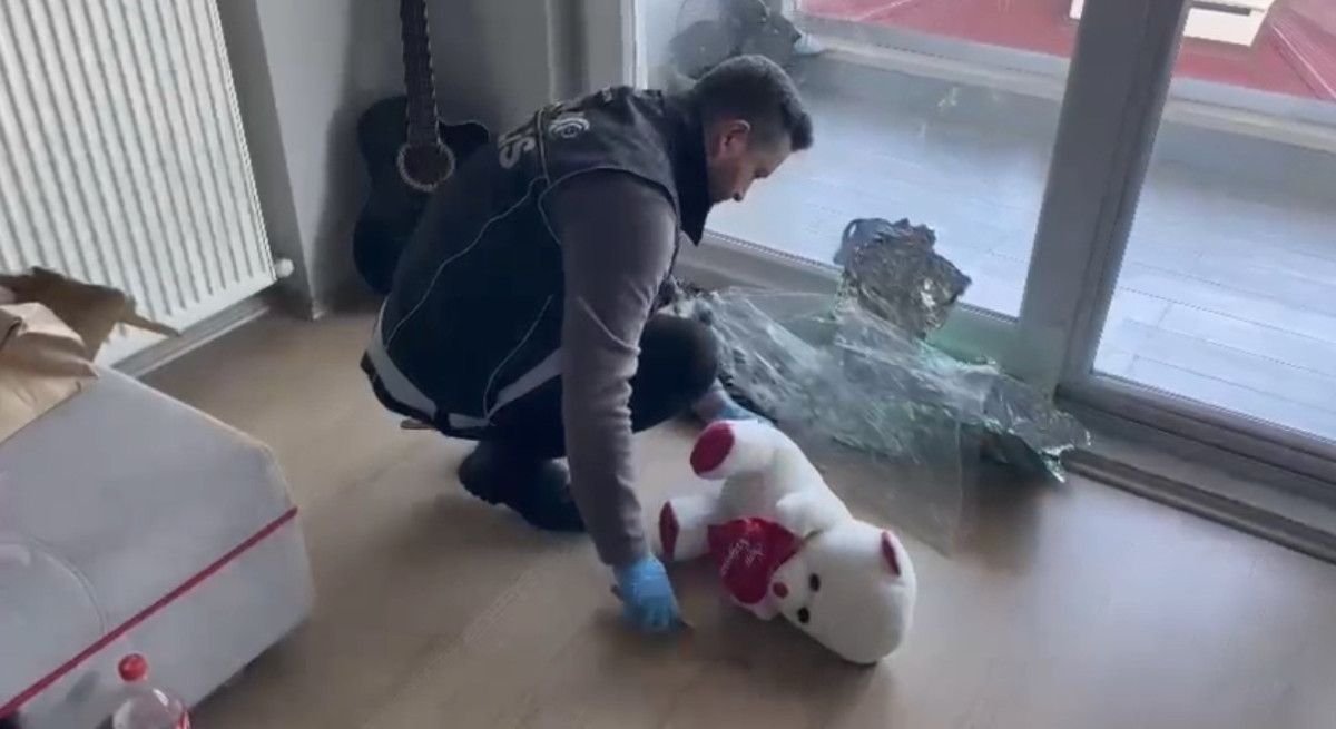 Arama sırasında, oyuncak bir ayının içerisine gizlenmiş 150 gram kokain ve 1 adet hassas terazi ele geçirildi.