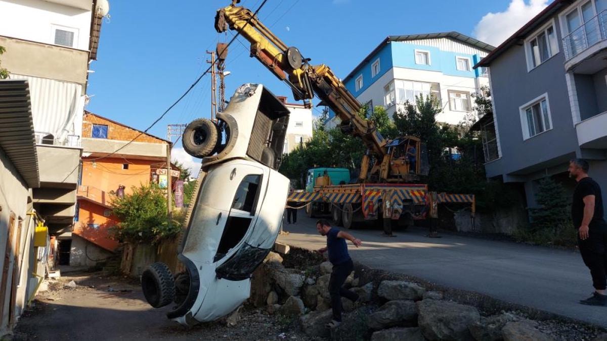 Kamyonet, bulunduğu yerden vinç yardımıyla kaldırıldı.