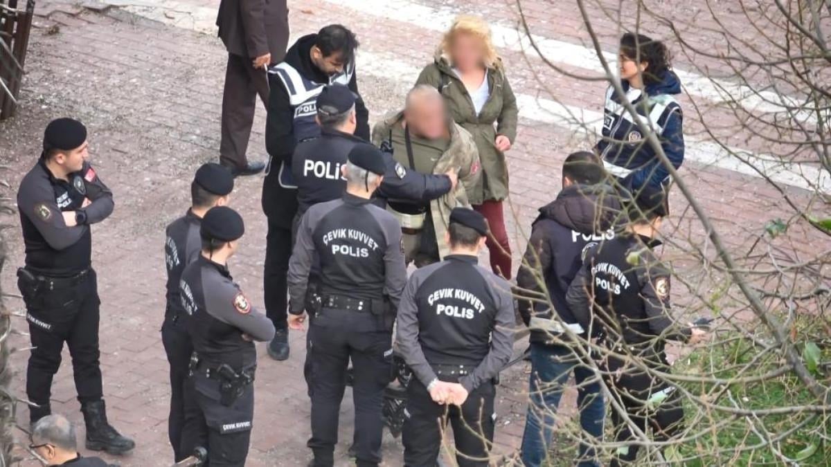 Çevreye rahatsızlık veren çiftin polise mukavemette bulunmasının ardından olay yerine çevik kuvvet polisleri de geldi.