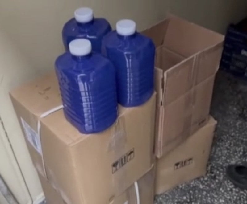 Yapılan aramalarda sahte alkollü içki yapımında kullanıldığı değerlendirilen toplam 70 litre etil alkol ele geçirildi.