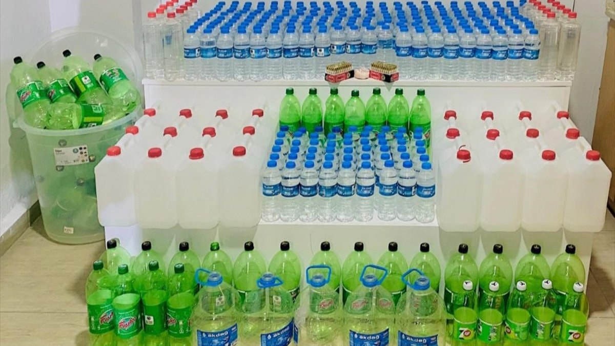 Belirlenen adrese düzenlenen operasyonda; 159 litre etil alkol, 77 boş içki şişesi, 2 kilogram sentetik uyuşturucu, 20 gram uyuşturucu madde ile 100 tabanca fişeği ele geçirildi.