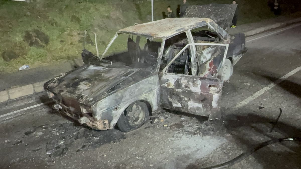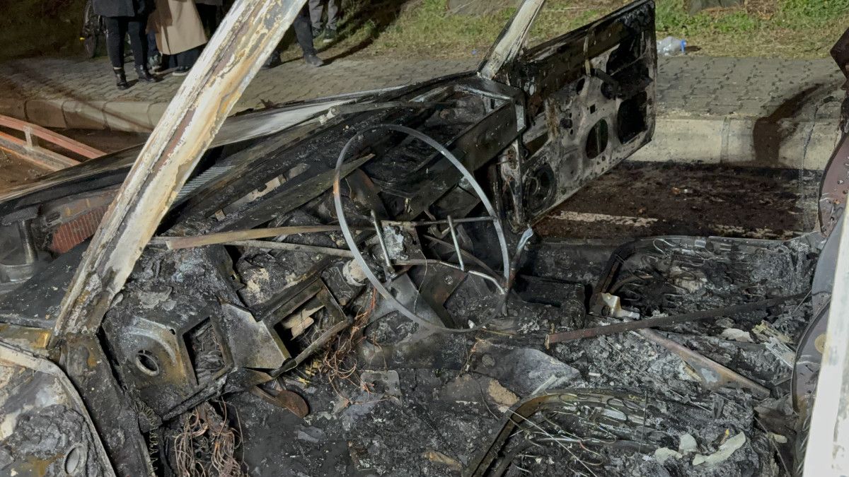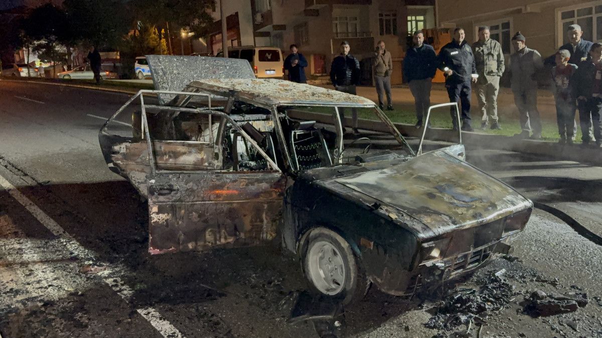 Kısa sürede alev topuna dönen otomobil tamamen yanarak demir yığınına döndü.