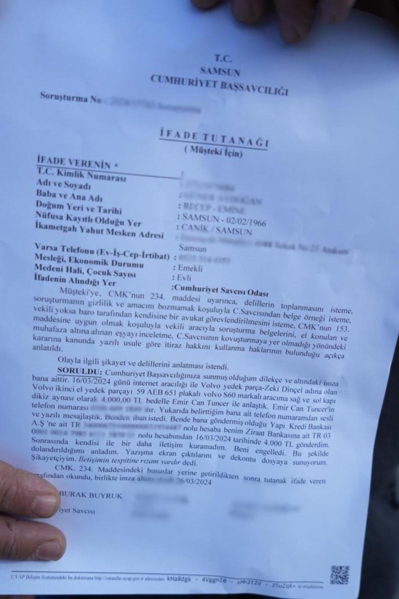 Akabinde kişi, Aydoğan’ın telefonlarını engelledi. Parasını göndermesine rağmen muhatap bulamayan ve ürünü alamayan Olgun Aydoğan, dolandırıldığını anlayınca Samsun Adliye Sarayı'na giderek suç duyurusunda bulundu.