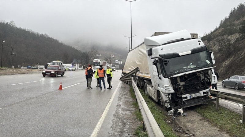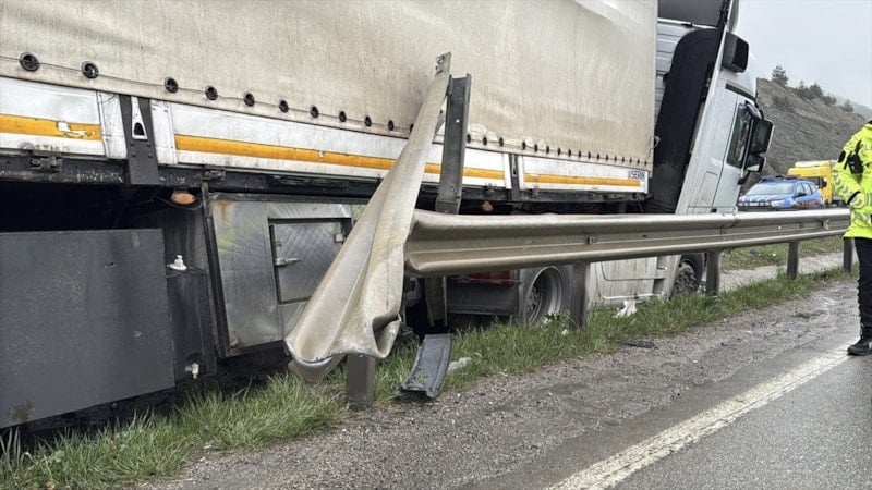 Sürücüsünün restoranda yemek yediği sırada freni boşalan tır, otoparktan çıkarak kara yoluna girdi ve yaklaşık 500 metre ilerledi. Kontrolden çıkan araç, yol kenarındaki demir korkulukları devirerek refüje çıktı ve burada durabildi.