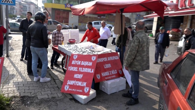 Samsun'un İlkadım ilçesi Kışla Mahallesi’nde 27 yıldır balıkçılık yapan Habil Yurtseven, Samsunspor’un UEFA Konferans Ligi’nde aldığı galibiyetler ve liderliği için kilosu 100 TL olan hamsiyi 25 TL’ye düşürdü.