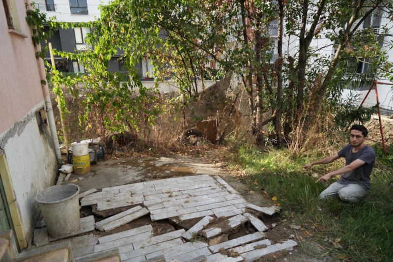 Yaşananları anlatan ev sahibi Fatih Afşin, "Yan parselde yapılan temel kazısı nedeniyle evimizde çatlaklar ve toprak kayması oluştu. Projeleri bize göre şaibeli. Evin yaklaşık 7 metresinde hasar oluştu. Evimiz her an yıkılabilir. İtfaiye, zabıta, belediye ve AFAD'a haber verdik, dilekçelerimizi verdik.