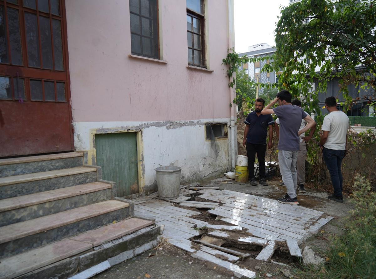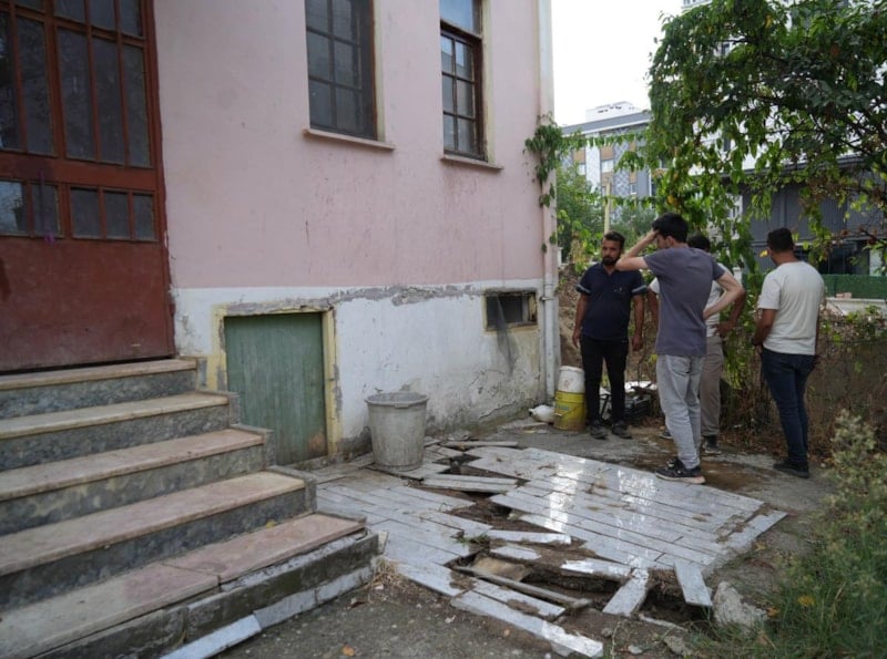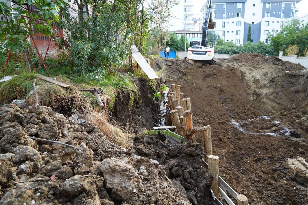Çalışmalar sırasında yan ev ve sundurmasında zeminin bir bölümünde yarıklar oluştu, toprak kayması meydana geldi.