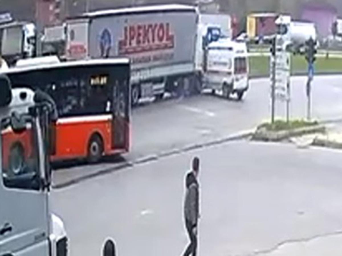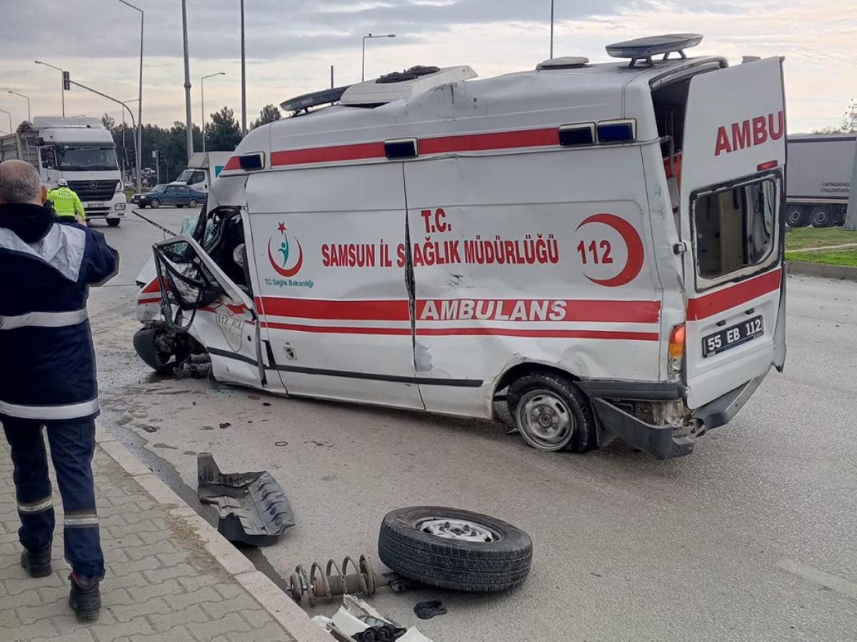 Samsun'un İlkadım ilçesi Kıran Mahallesi'nde tır ile ambulans kavşakta çarpıştı.