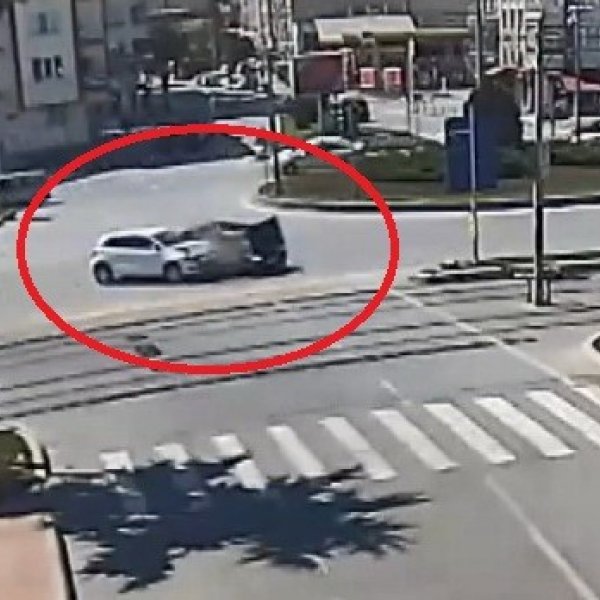 Kaydedilen kazaların birinde kavşakta bekleyen araç, ışık ihlali yaptı. O sırada yolda hızla seyreden araç kırmızı ışığa dikkat etmeyen, bir diğer araca çarptı. Kazanın etkisiyle iki araç da tramvay yoluna savruldu.