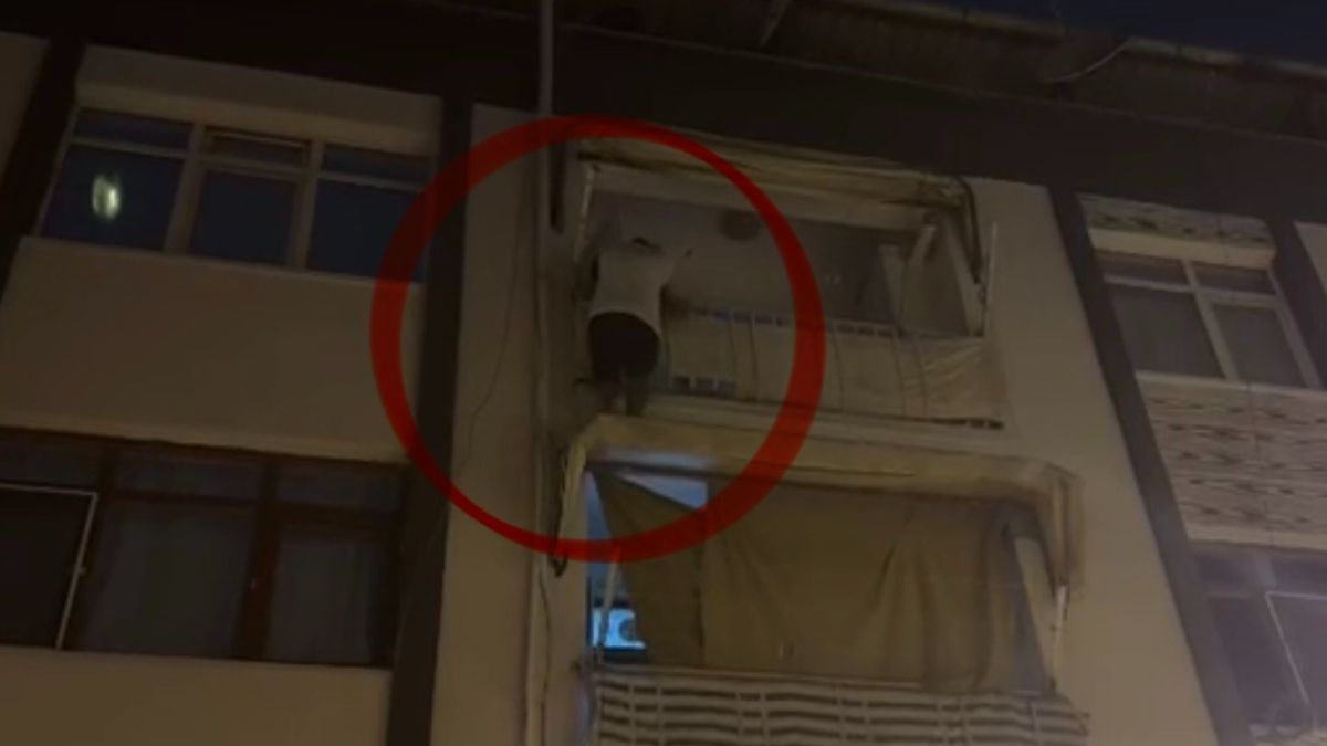 Alt kattaki komşular da şahsın düşme ihtimaline karşı büyük endişe yaşarken, balkonda kalan şahsı eve geri dönmesi için ikna etmeye çalıştı.
