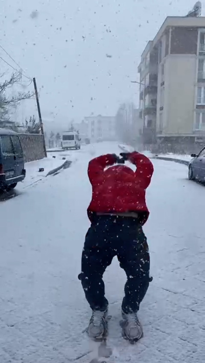 Samsun'un Terme ilçesinde sabah saatlerinden itibaren ilçeyi beyaza bürüyen kar yağışı, vatandaşları sokağa dökerken, geri takla alanında Guinness Rekorlar Kitabı’na giren Terme Judo Kulübü Antrenörü Osman Ismak da karla kapanan yolda art arda 20 geri takla atarak, kar sevincine ortak oldu.