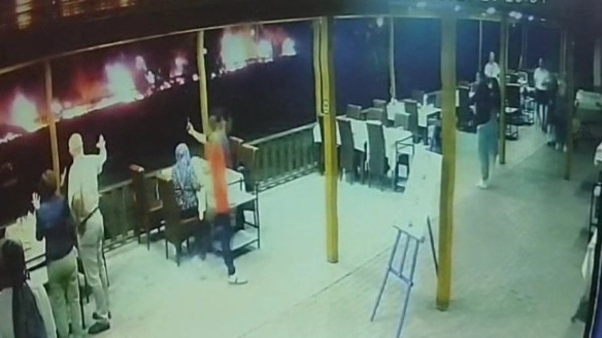 Bir restoranın güvenlik kamerasına yansıyan görüntüde ise müşterilerin masalarından panik içinde kaçması dikkat çekti.