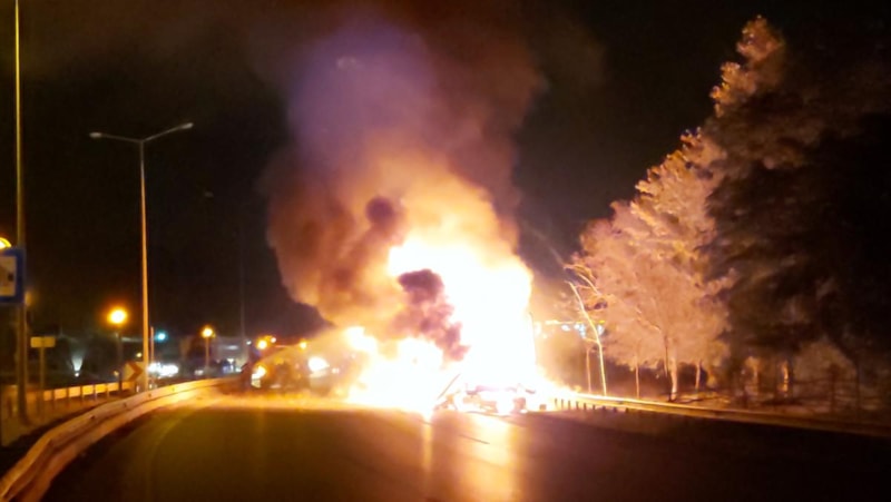 Tır, alev alırken önce Çetin Y. yönetimindeki otomobile ve bir süre ilerledikten sonra da Bora U. idaresindeki hafif ticari araca çarptı.