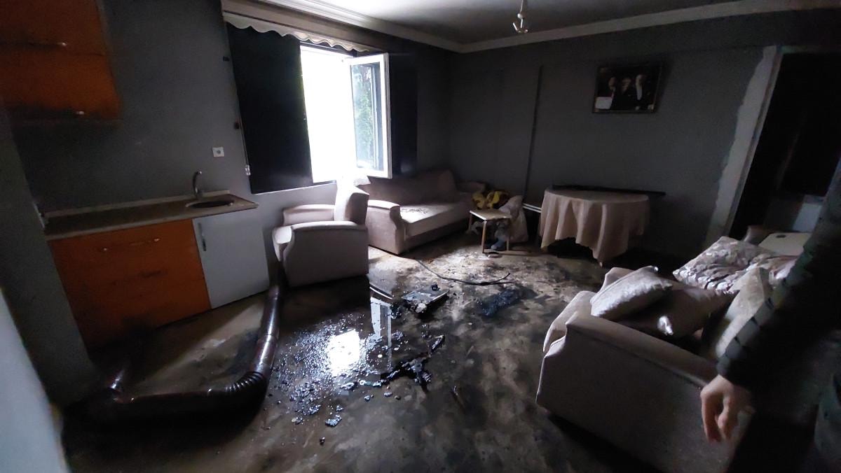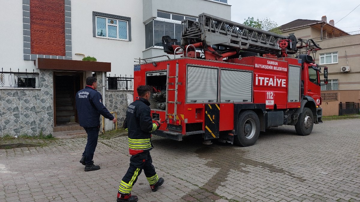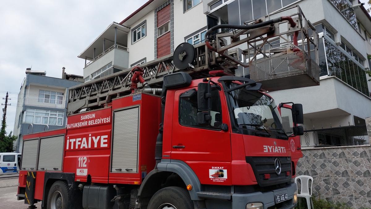 Samsun'un Tekkeköy ilçesindeki 3 katlı aile apartmanının birinci katında, saat 06.45'te yangın çıktı.
