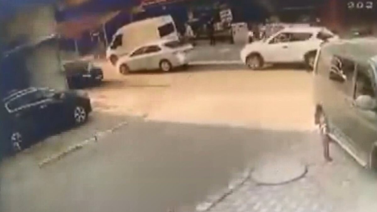 Kazada şans eseri çocuklardan biri yara almadan kurtulurken diğeri bacağından yaralandı. O anlar ise bir iş yerinin güvenlik kamerasına yansıdı.