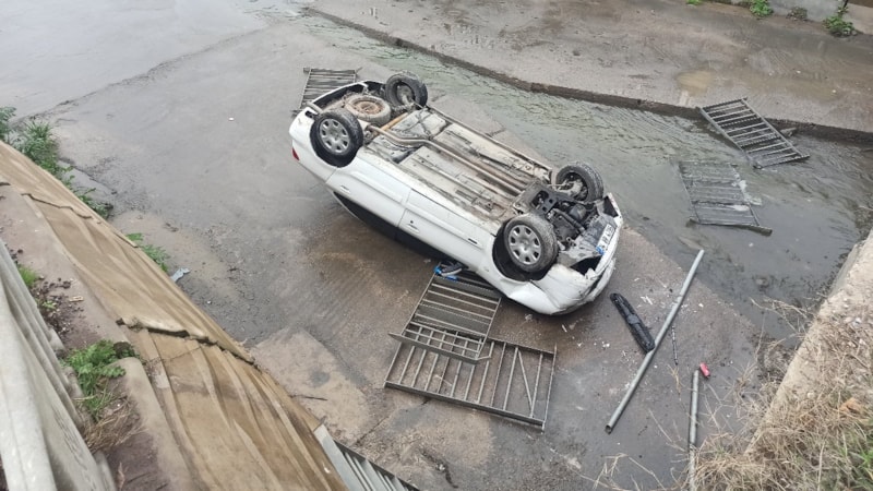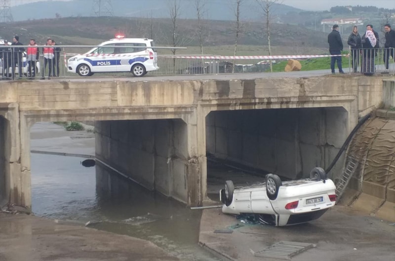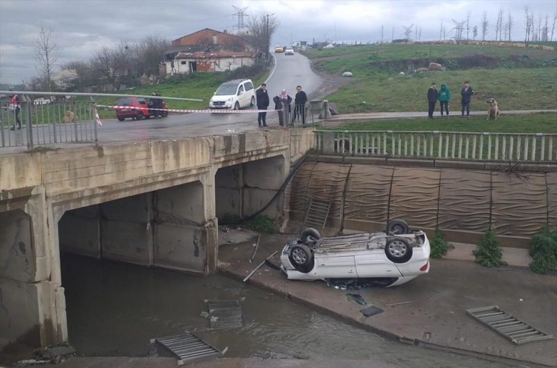 İstanbul'un Sancaktepe ilçesi Mevlana Mahallesi Öztepe Caddesi'nde seyir halindeki otomobilin sürücüsü, caddedeki derenin üzerinde bulunan köprüden geçtiği sırada, yağışın etkisiyle kayganlaşan yolda direksiyon hakimiyetini kaybetti.