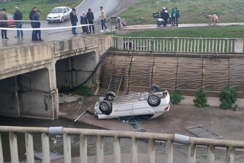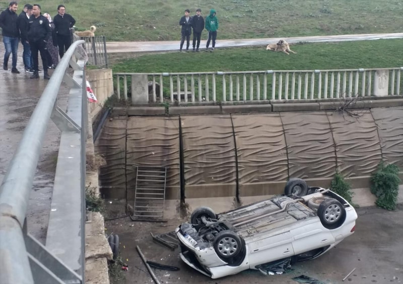Kontrolden çıkan otomobil köprünün demir korkuluklarını aşarak dereye düştü. Kazada otomobilin sürücüsü ve yanında bulunan bir kişi yaralandı.