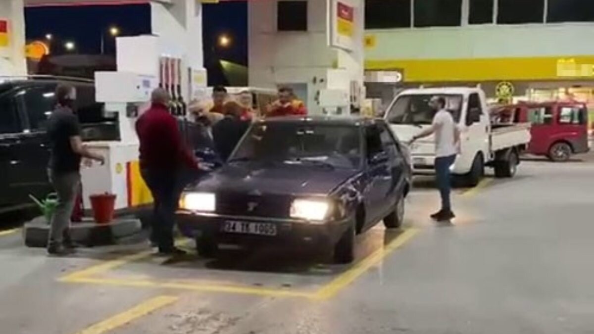 Benzin istasyonuna gelen şahıslar ile pompacı olarak çalışan şahıs arasında kavga çıktı. Kavgada yumruklar havada uçuştu.