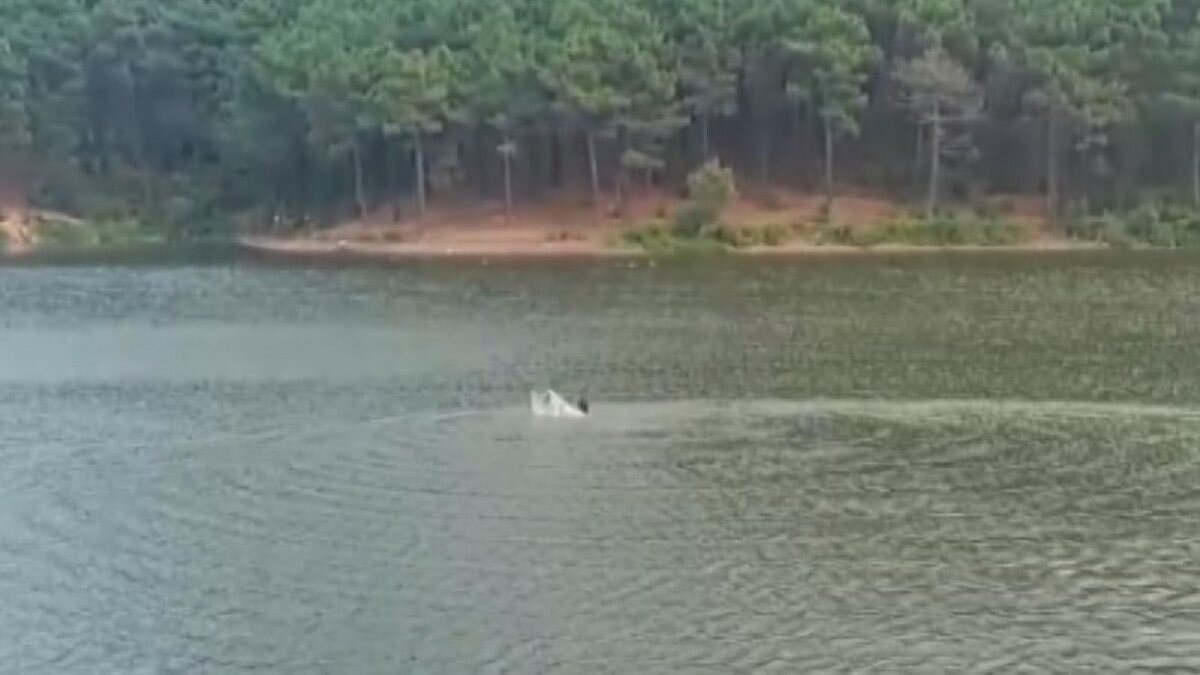 Görüntülerde Hüseyin Eriş'in gölette kulaç atarak ilerlediği görülürken, görüntüleri çekenlerin ise endişeleri konuşmalarına yansıdı.
