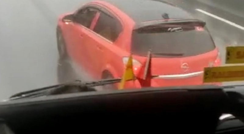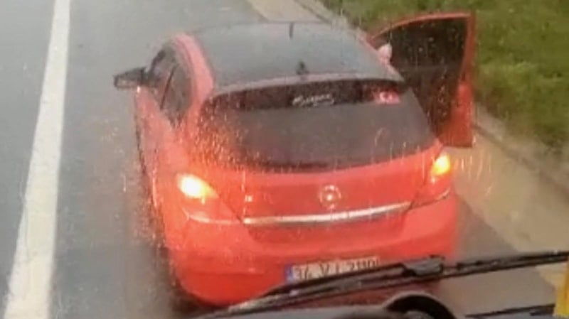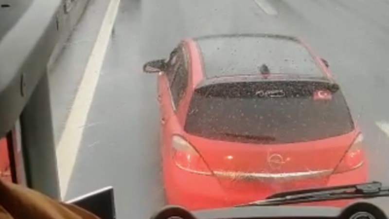 İstanbul’un Sancaktepe ilçesi TEM Otoyolu Samandıra mevkii Ankara istikametinde seyir halindeki bir otomobil sürücüsü, sol şeritte ilerleyen şehirler arası yolcu taşıyan otobüse yol vermek istemedi.