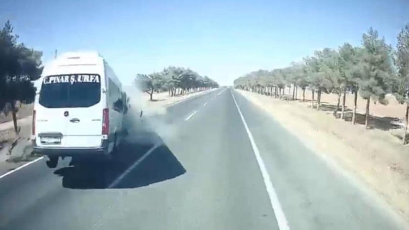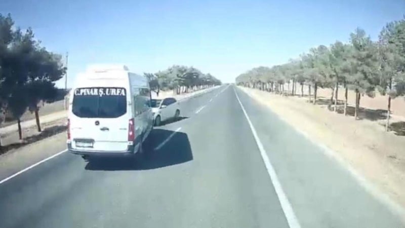Şanlıurfa'da minibüs ile otomobilin çarpışması sonucu 1 kişinin yaşamını yitirdiği, 14 kişinin yaralandığı kaza anı araç kamerasınca görüntülendi.