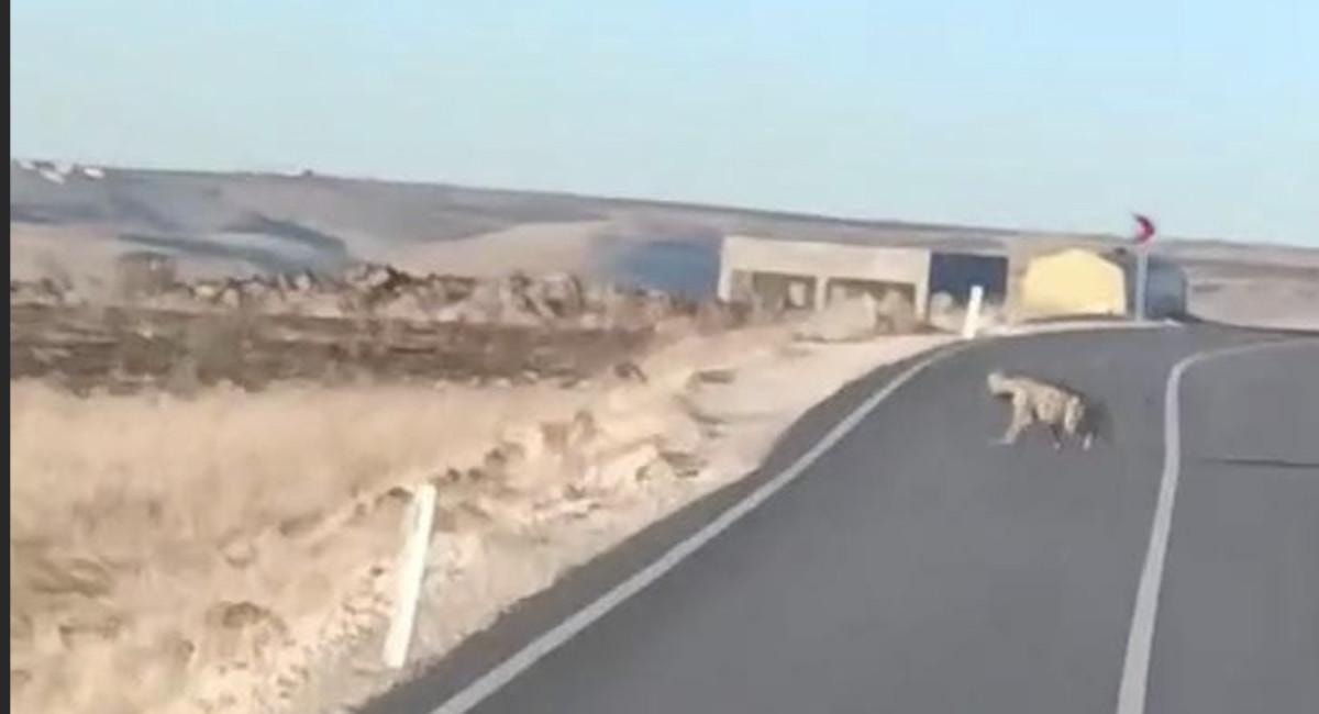 Şanlıurfa’nın Karaköprü ilçesine bağlı kırsal Otlukalan Mahallesi'nde aracıyla ilerleyen bir sürücü, nesli tükenme tehlikesi altında olan çizgili Anadolu sırtlanı gördü.