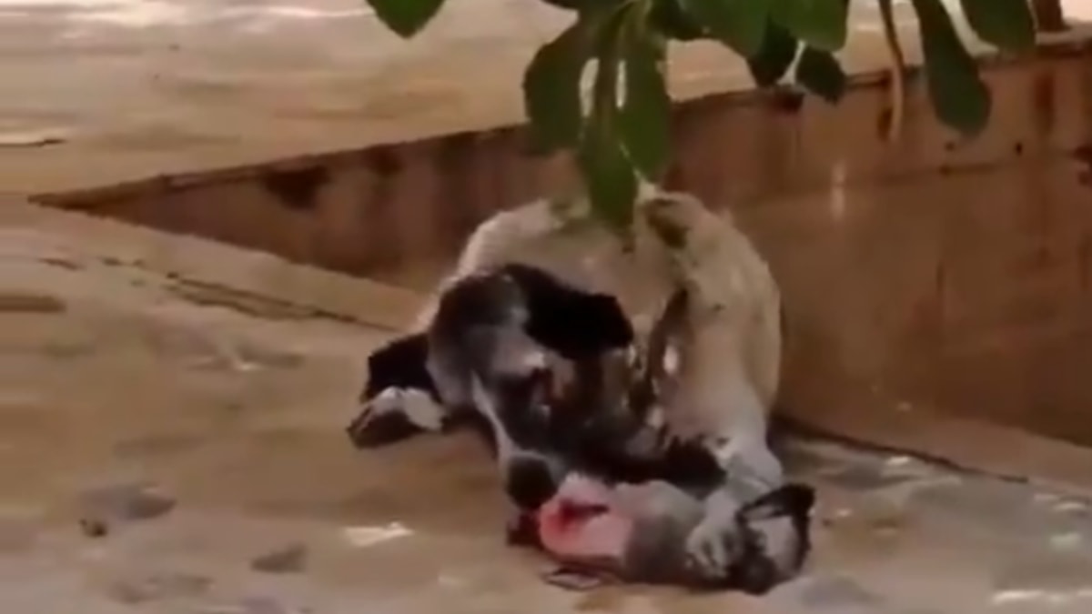 Harran Üniversitesi Osmanbey kampüsü içerisinde yaşayan başıboş sokak köpeği, başka bir yavru köpeği parçaladı.