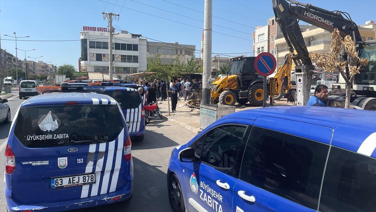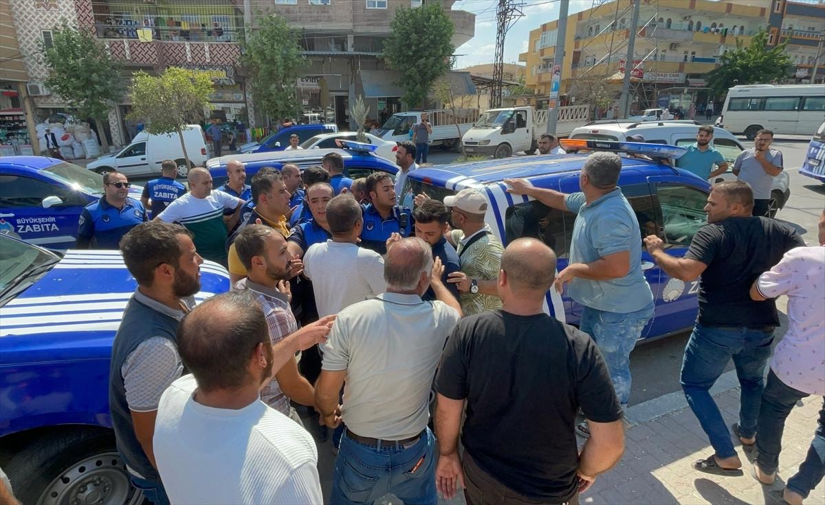 Şanlıurfa'nın Haliliye ilçesi Devteşti Mahallesi'nde zabıta ile esnaf arasında tezgah yeri nedeniyle başlayan sözlü tartışma çevredekilerin de müdahalesiyle kısa sürede büyüdü.