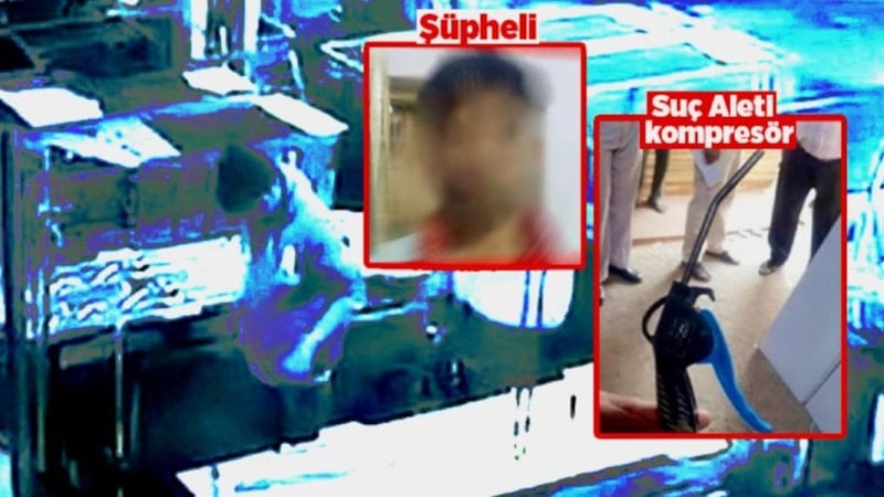 Ardından pantolonu zorla çıkarılan çocuğun makatına yüksek basınçlı kompresörle hava verildi.