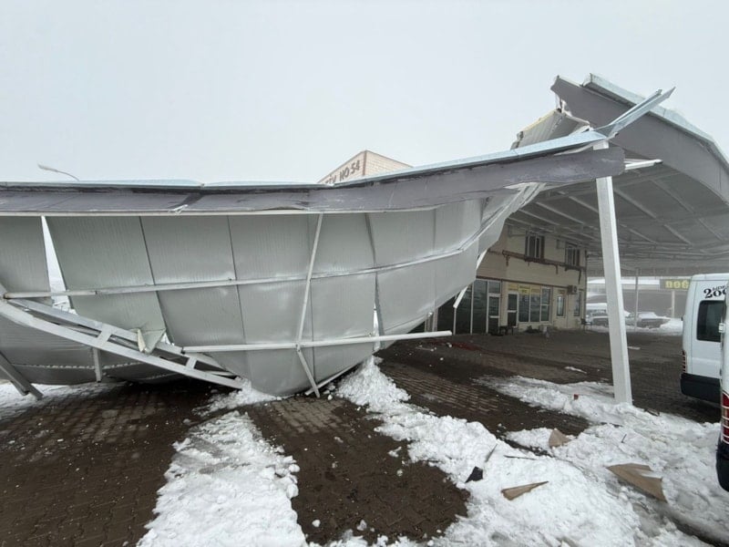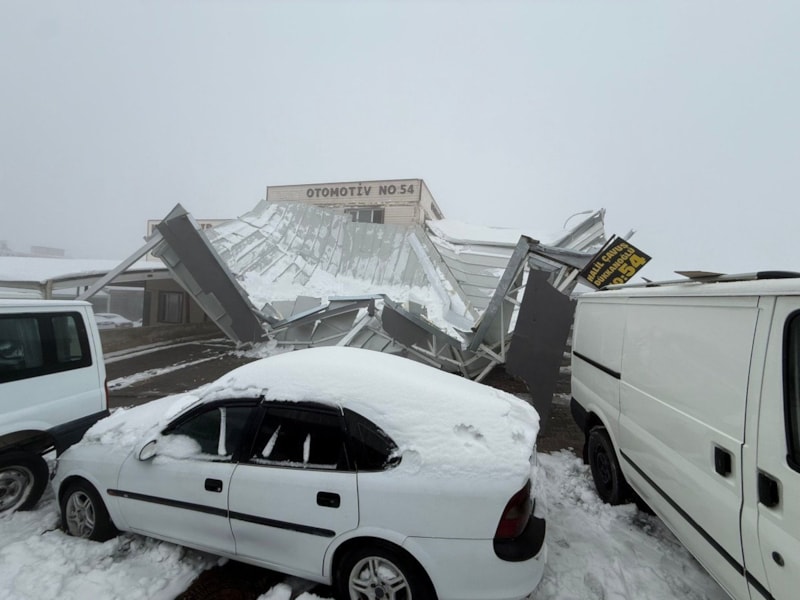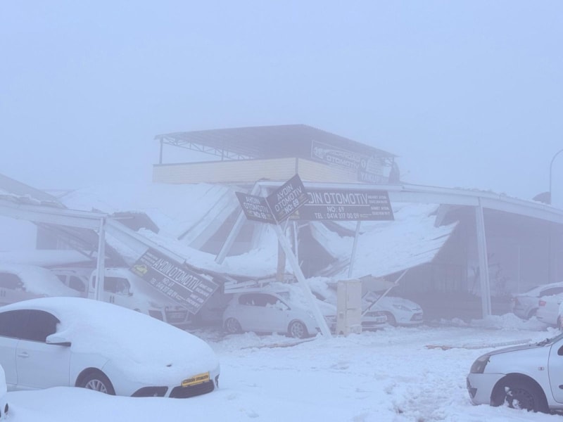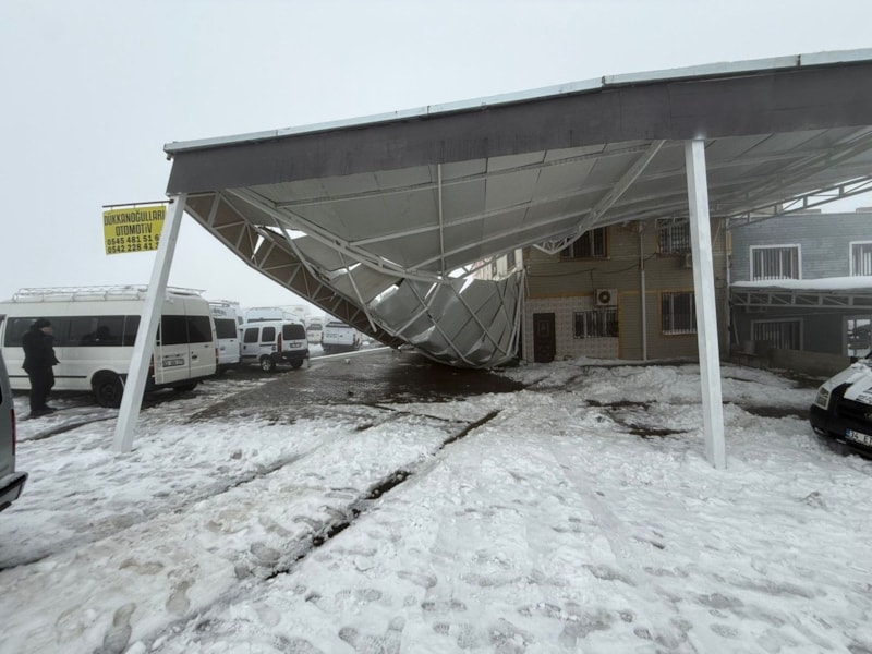 Şanlıurfa'da bazı iş yerleri ile oto galeri dükkanlarında araçların bulunduğu alanların çatıları, üzerlerine biriken karın ağırlığına dayanamayarak çöktü.