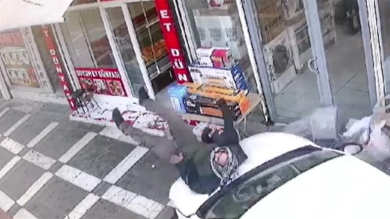 Öte yandan kaza anı çevredeki iş yerlerinin güvenlik kameralarına yansıdı.