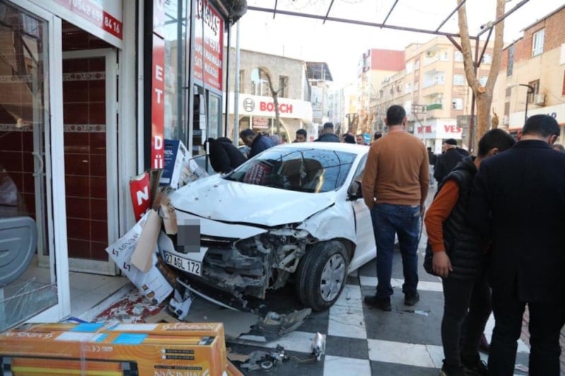 Şanlıurfa'da kaza yaptıktan sonra kontrolden çıkan otomobil, kaldırımda yürüyen baba ve oğluna çarptı. Kaza anı güvenlik kamerasına yansıdı.