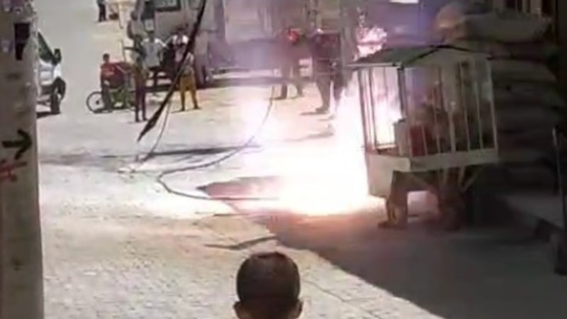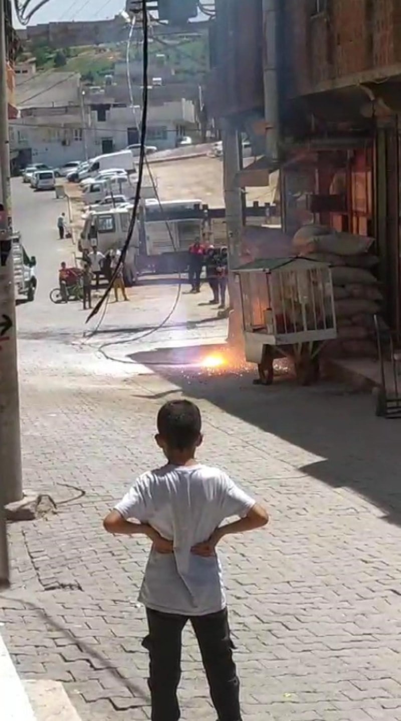 Şanlıurfa Eyyübiye ilçesine bağlı Mance Mahallesi'nde, elektrik direğinden kopan elektrik kablosu patladı.