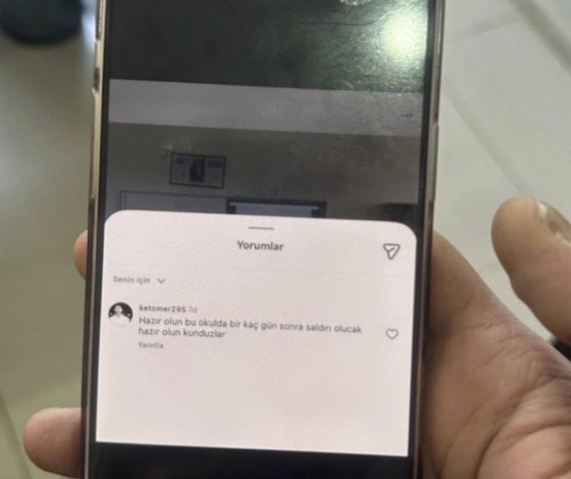 Ket'in sosyal medya hesabından yapılan bir paylaşıma yorum yazdığı ve "Hazır olun bu okulda birkaç gün sonra saldırı olacak, hazır olun kunduzlar" notunu düştüğü görüldü.